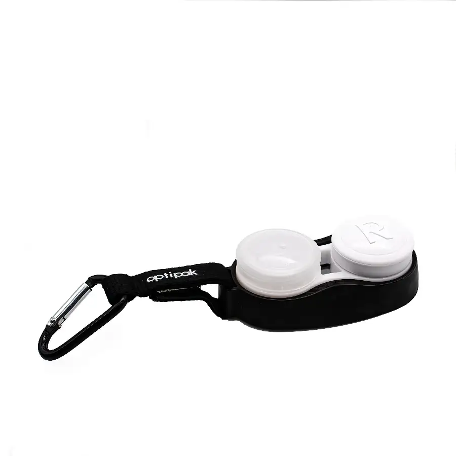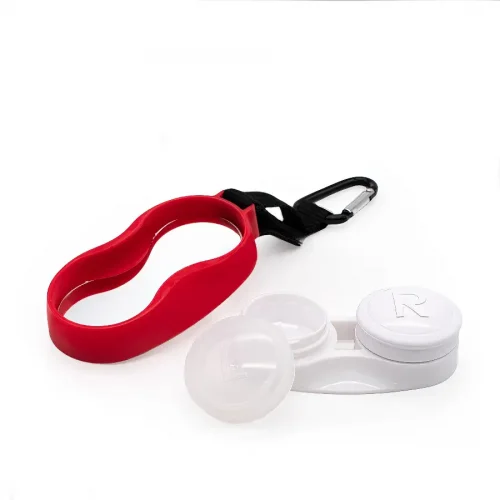 Sportliches Reise-Etui mit Neoprenhülle und Karabiner.