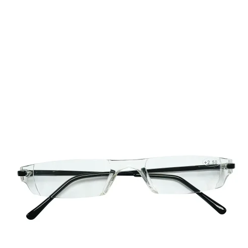 Lesebrille mit Softetui Farbe: transparentes Mittelteil aus Kunststoff; schwarzer Metallbügel Stärken: +1.00, +1.50