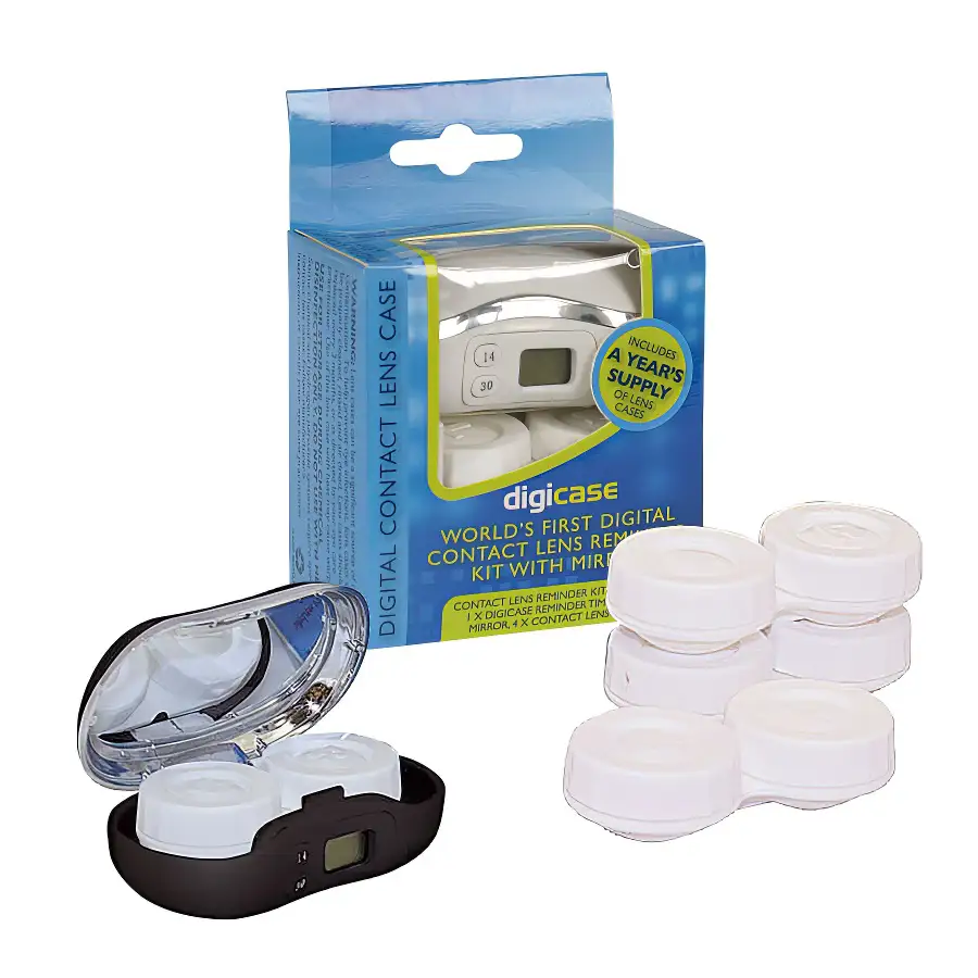 Etui mit elektronischem Tageszähler, einstellbar auf 30 oder 14 Tage. Für weiche Kontaktlinsen geeignet.