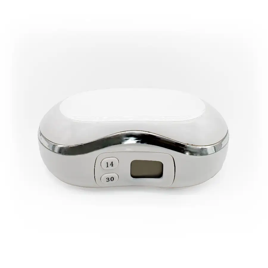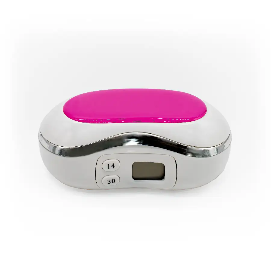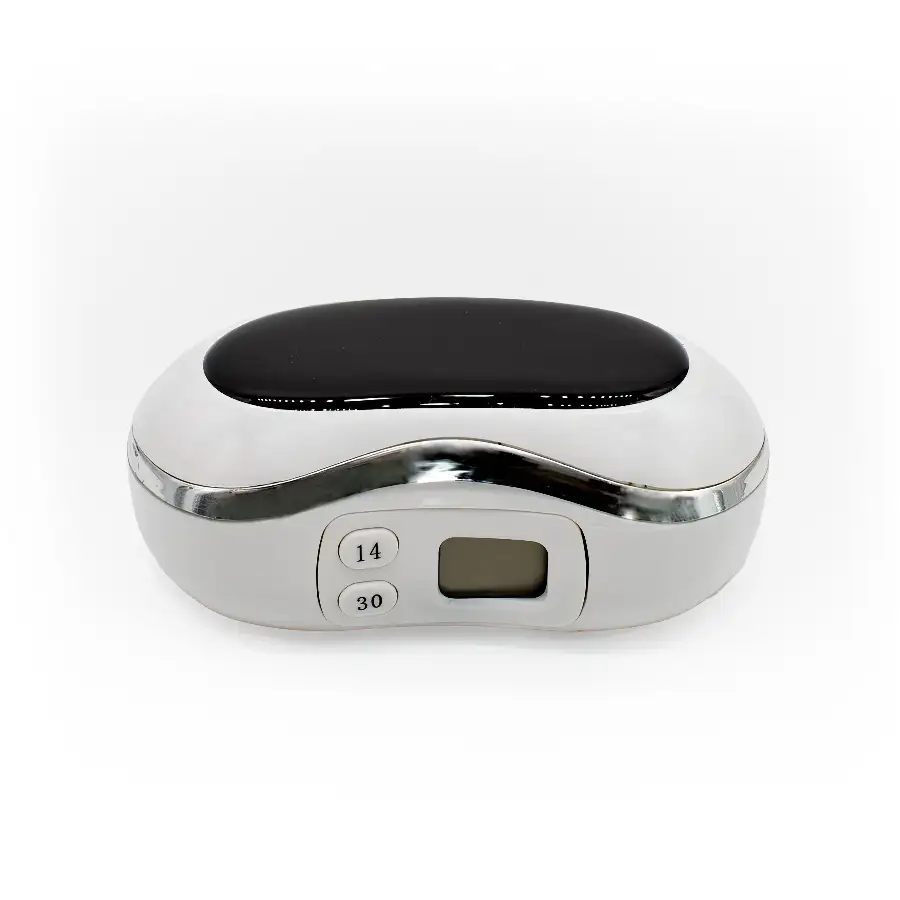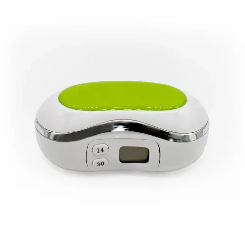 Etui mit elektronischem Tageszähler und KL-Behälter, einstellbar auf 30 oder 14 Tage.