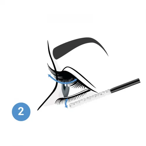- Beginnend vom Wimpernansatz entlang der Wimpern auftragen. Mit Vor-und Zurückbewegungen.