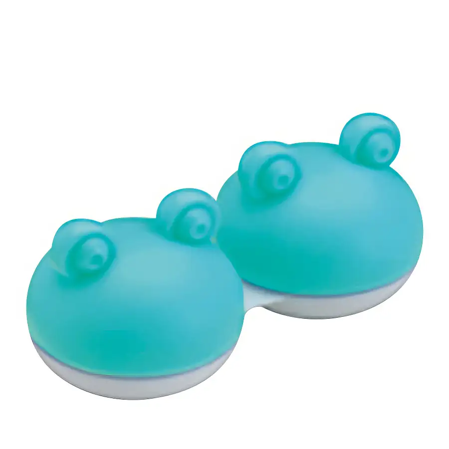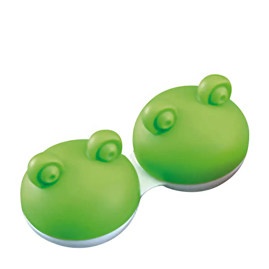 Tierischer Kontaktlinsenbehälter in fröhlichen Farben.
