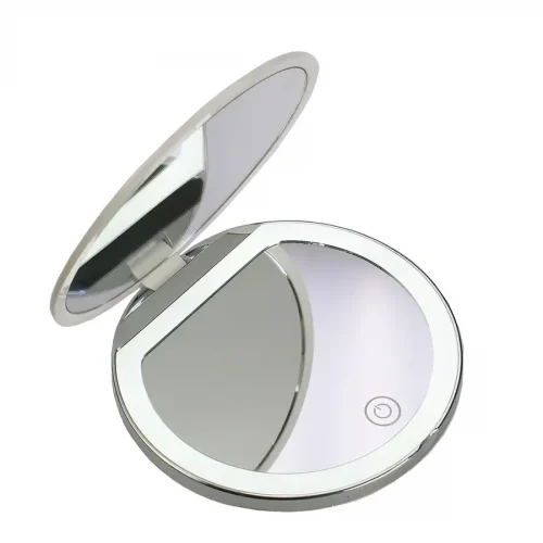 Runder Taschenspiegel mit LED-Beleuchtung.