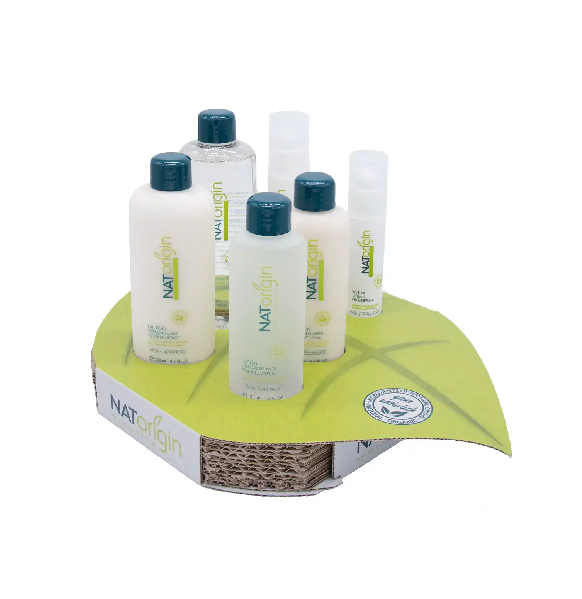 Ansprechende Displays zur Präsentation der NATorigin Kosmetiklinie. Inkl. Testerware